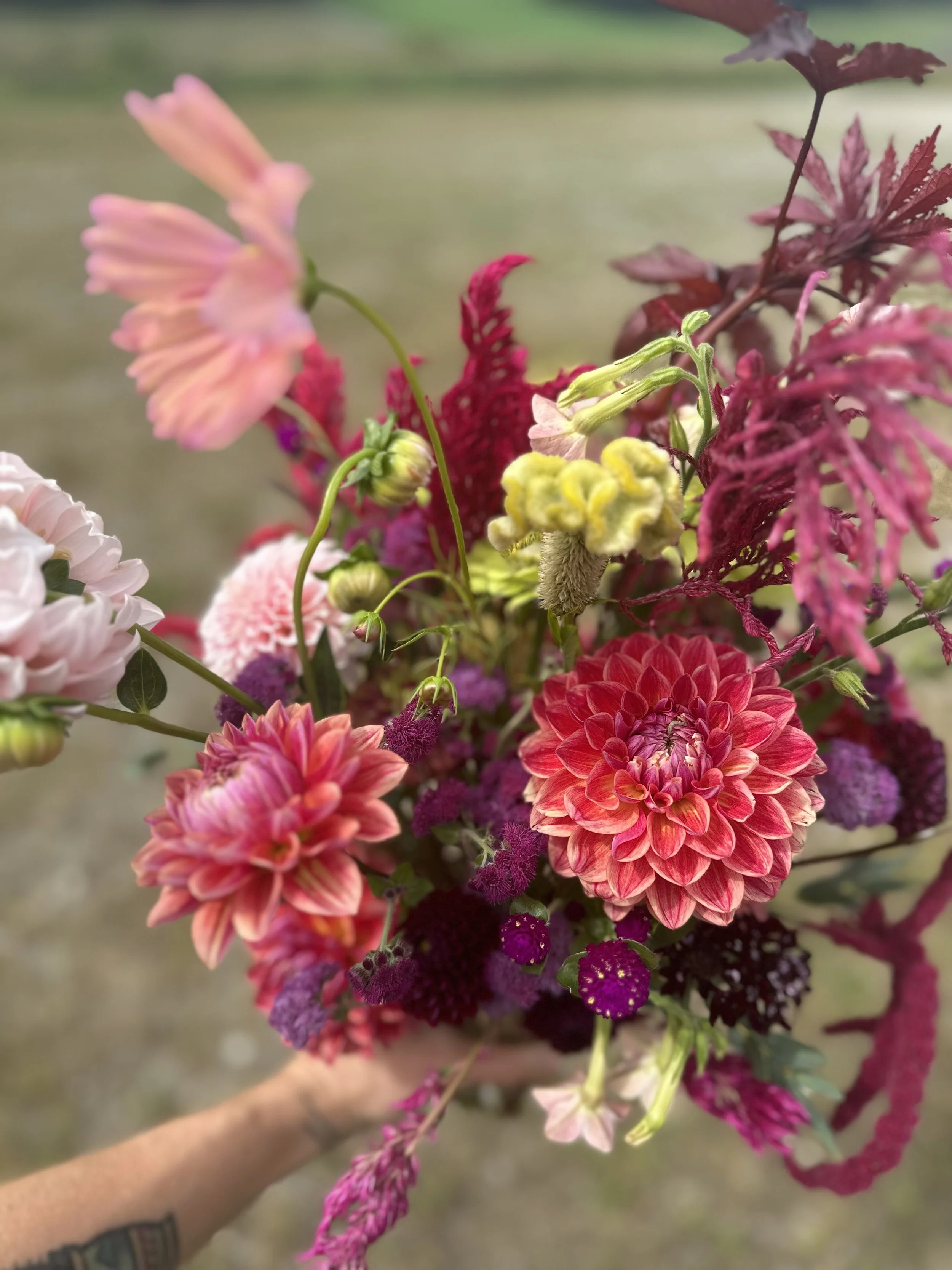 At the conclusion of the 2024 growing season, Lucia Rising Flowers transitioned away from the growing of flowers to focus on creative floral artistry in weddings, memorials, custom projects, general event services and beyond. This pivot allows for deeper articulation of design vision and availability to travel greater distances as your florist. I am committed to the incorporation of unique elements and sourcing blooms from local growers wherever possible. Itβs been an honor to grow for you and I am looking forward to supporting other New England farmers while bringing highly intentional design to your special arrangements and functions.